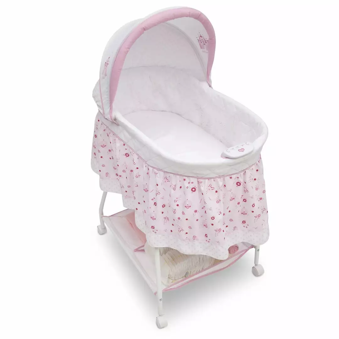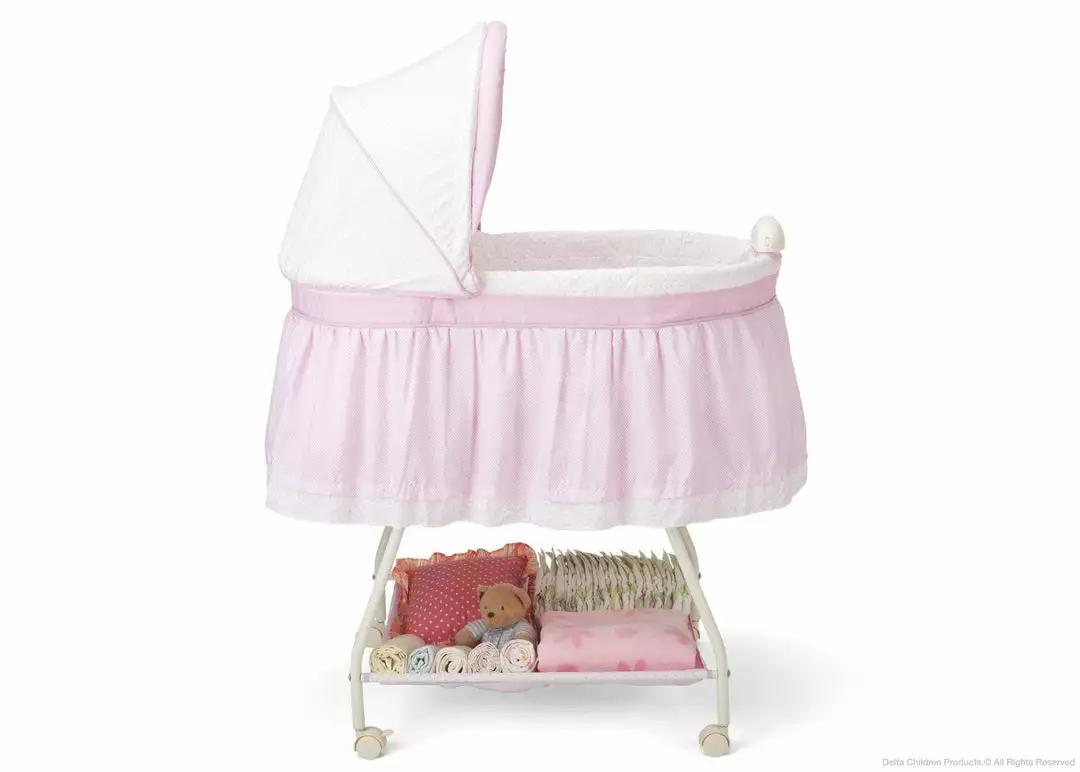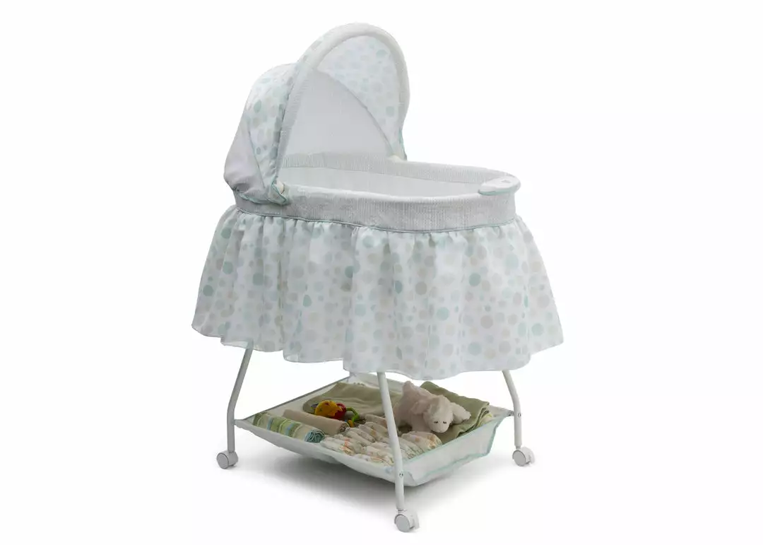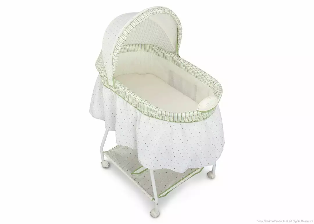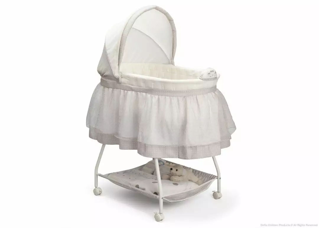 Providing a sense of security while also delivering on style, Delta Children’s Sweet Beginnings Bassinet boasts an adjustable canopy and an electronic music module with nightlight and gentle vibration. This cozy bassinet helps parents establish healthy sleep habits right from the start.