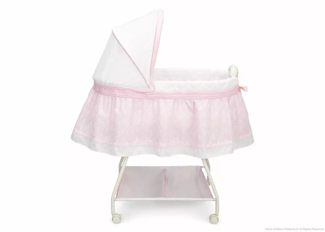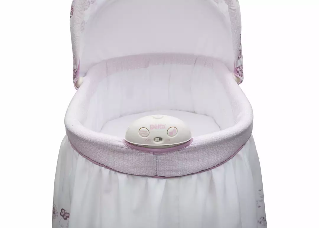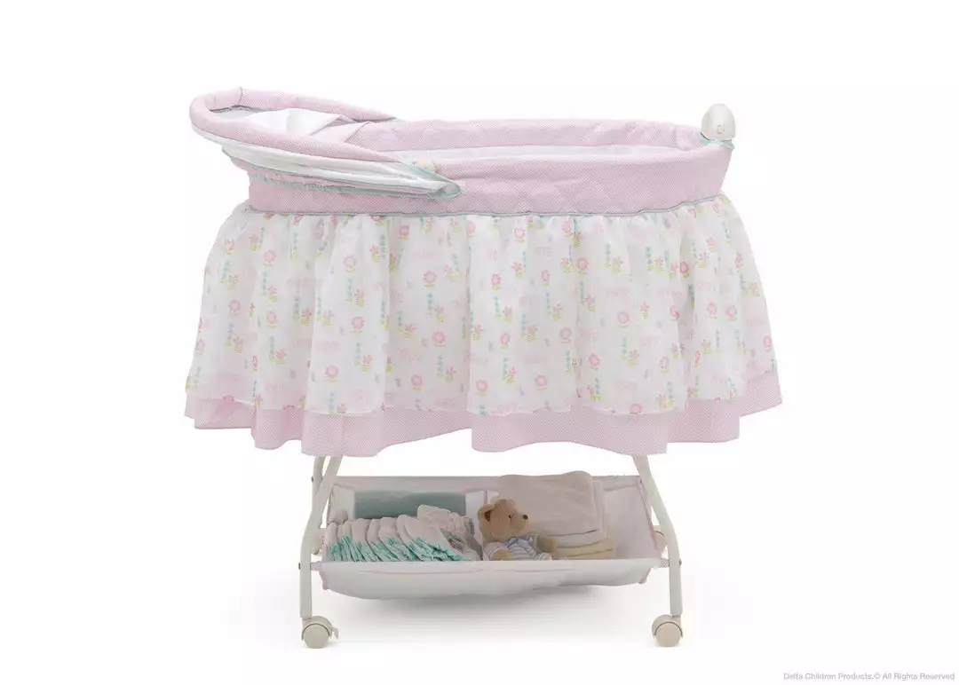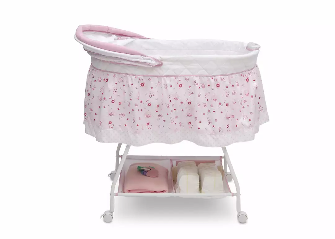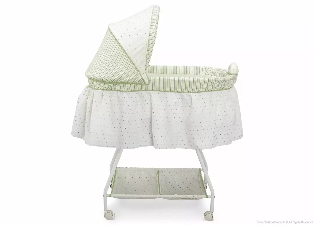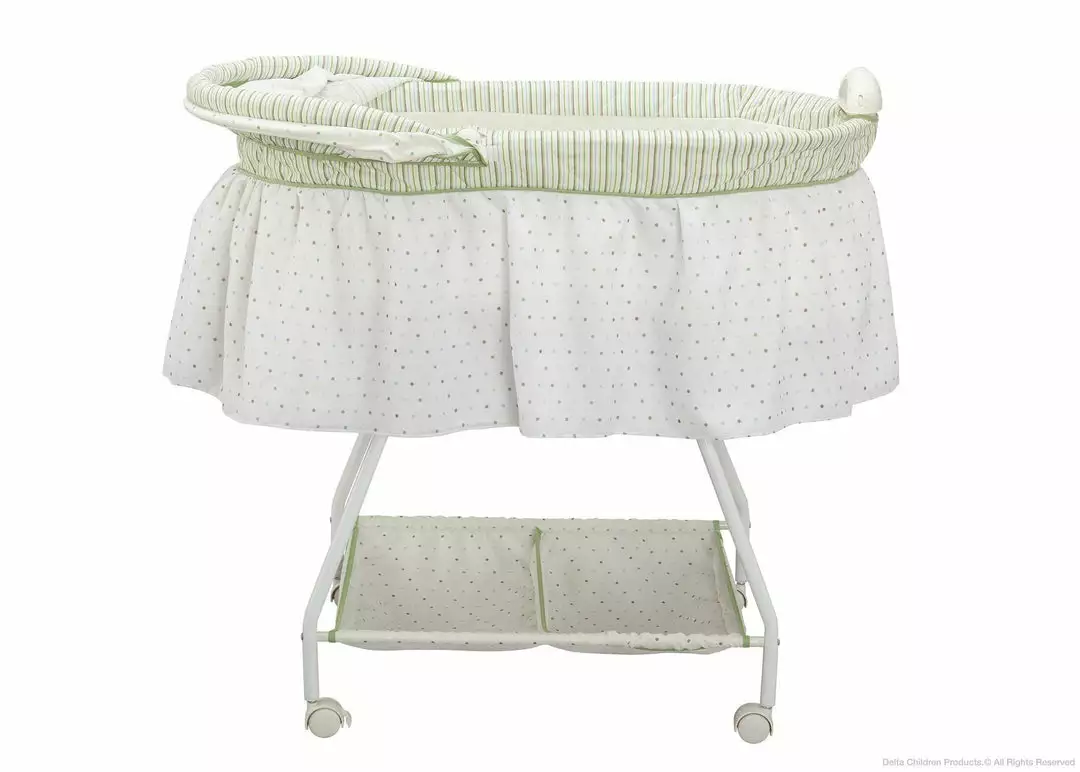 Providing a sense of security while also delivering on style, Delta Children’s Sweet Beginnings Bassinet boasts an adjustable canopy and an electronic music module with nightlight and gentle vibration. This cozy bassinet helps parents establish healthy sleep habits right from the start.