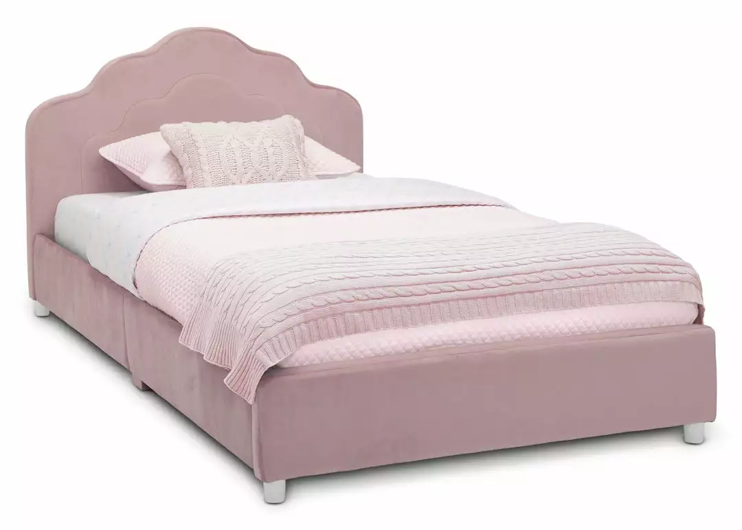 Inspire Sweet dreams with this Upholstered Twin Bed by Delta Children. Perfect for your little one’s bedroom, This kids’ twin bed shows off velvety upholstery with a playful scalloped silhouette for a look both you and your child will love. Generous padding ensures long-lasting comfort and support while sitting up to read or watch TV. The bed’s durable wood platform frame with slats eliminates the need for a box spring. Twin mattress sold separately. Delta Children was founded around the idea of making safe, high-quality children’s furniture affordable for all families. They know there’s nothing more important than safety when it comes to your child’s space. That’s why all Delta Children products are built with long-lasting materials to ensure they stand up to years of jumping and playing. Plus, they are rigorously tested to meet or exceed all industry safety standards.