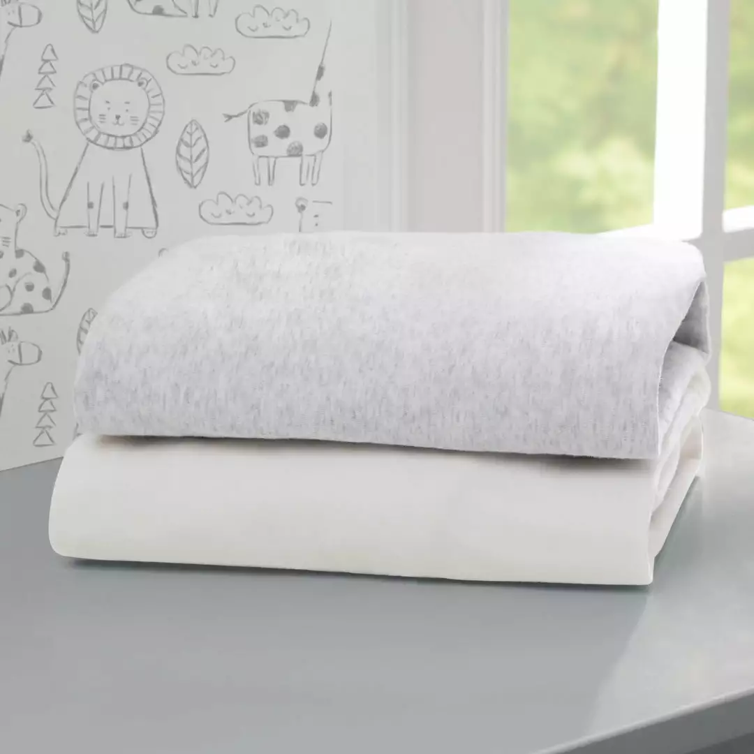 These Fitted Crib Sheets (2-Pack) by Delta Children are soft, stylish and perfect for your baby’s nursery. Made of jersey knit cotton, these fitted crib sheets keep their softness, wash after wash. Elasticized edges all around create a snug fit on standard-size crib mattresses. And you can never have enough sheets for your baby, so grab a few sets to keep up with accidents or spills! These sheets are machine-washable for easy care.