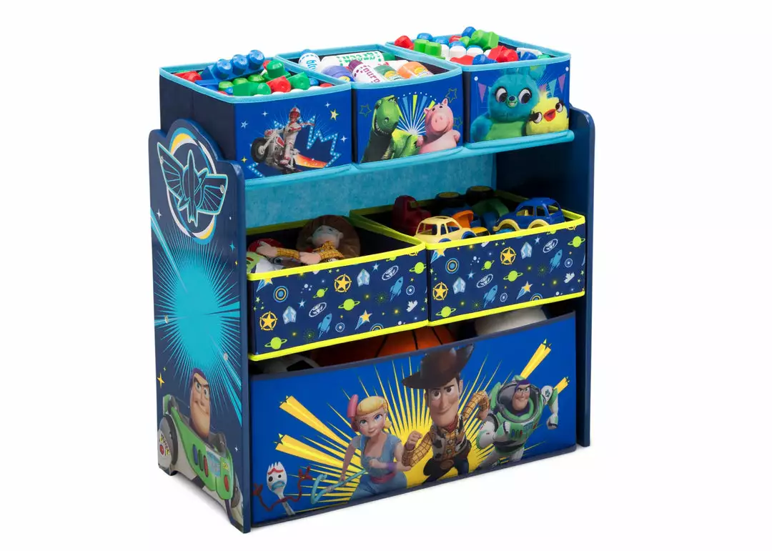 Your little one’s toys will find their home in the Toy Story 4 Design and Store Toy Organizer by Delta Children. This out-of-this-world storage solution features three small, fabric bins on top, two medium sized bins in the middle and one larger fabric storage bin at the bottom. Offering generous space for toys of all sizes, this organizer can store books, games, dress-up clothing and more. Action-packed graphics bring the fun-loving Toy Story gang to life, to help tackle cleanup time. Plus, cleaning up their space becomes even more of a rootin’, tootin’ good time thanks to reusable stickers that allow kids to decorate this organizer themselves. The sides of the bin feature colorful, Toy Story-inspired scenes that serve as the perfect backdrop for the included reusable stickers—send Buzz and Woody to outer space or pair Little Bo Peep and Forky up for an unforgettable adventure. You could go “To infinity and beyond” and not find a better toy box for your Toy Story fan.