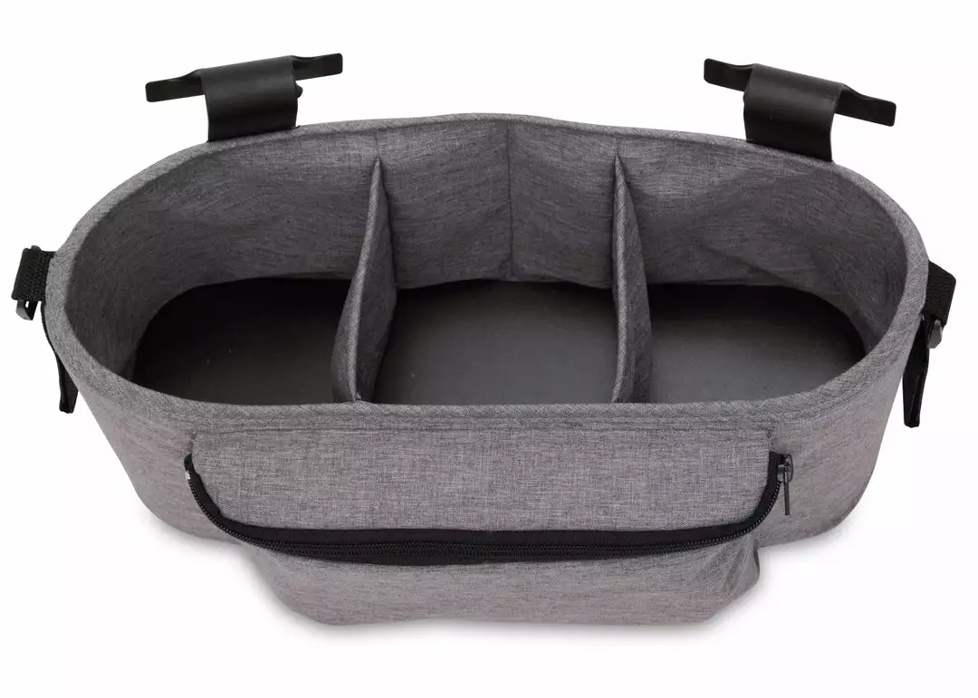 Stay organized while on the go with the Jeep Parent Organizer for Wrangler Stroller Wagon. This roomy organizer with three compartments and zipper front pocket will keep all your essentials within reach. A great addition to your Jeep Wrangler Stroller Wagon (#60001) for additional storage, you can attach it two ways–use the included clips to attach it to the wagon frame or use the straps to attach it to the wagon handlebar.