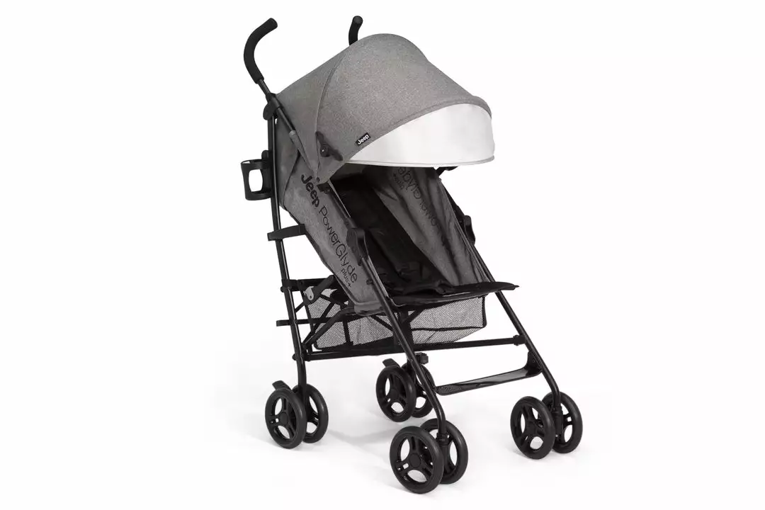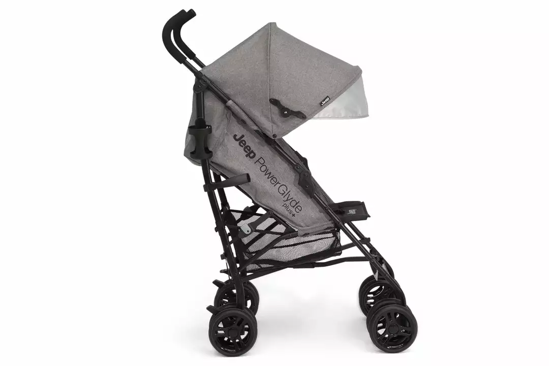 Wherever the road takes you, the Jeep PowerGlyde Plus Stroller by Delta Children will deliver the best ride ever. The Jeep PowerGlyde Plus offers the most advanced handling thanks to all-new front wheels that feature precision technology, making it easier than ever to glide, turn and maneuver any surface. Ideal for travel or everyday use, this extremely lightweight stroller with an aluminum frame weighs under 14 pounds and features a compact umbrella fold with an auto lock design and carry handle. An extra-large extendable canopy with UPF 50+ sun visor will protect your child from the elements and a four-position reclining seat ensures baby is comfortable during walks, near and far. Some additional features of this lightweight stroller include: five-point safety harness, extra-large storage basket, cup holder and swivel front wheels. This stroller is recommended for infants 6 months up to 50 pounds. Let’s Glyde!