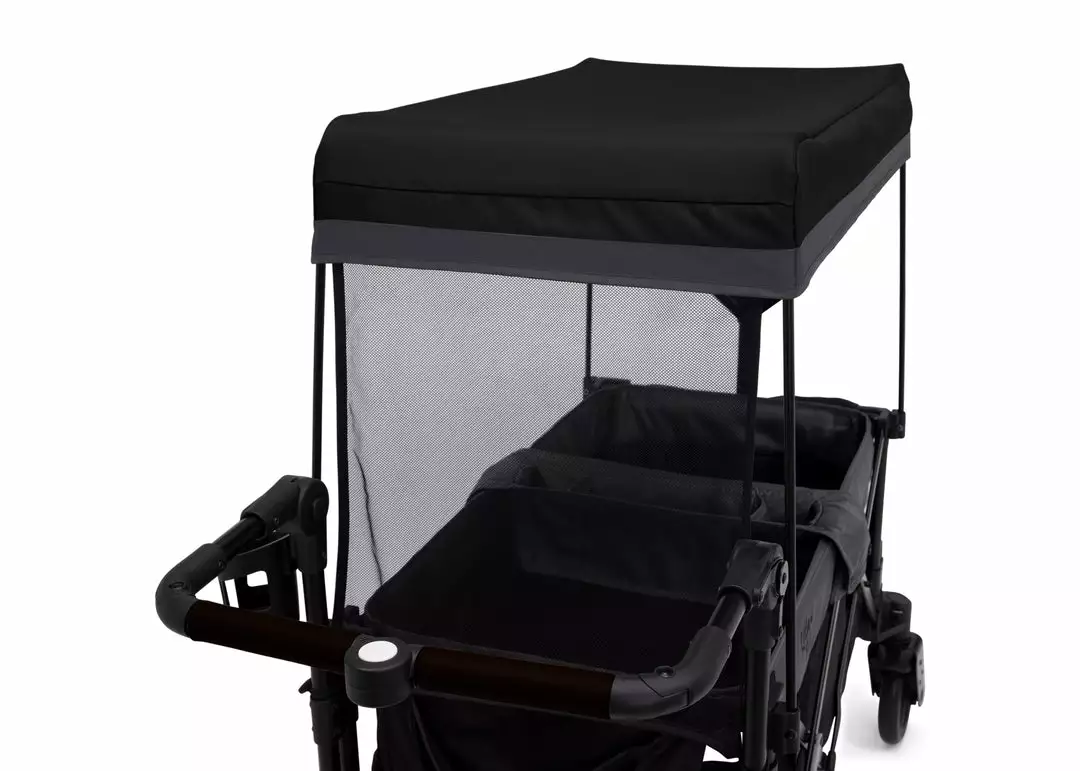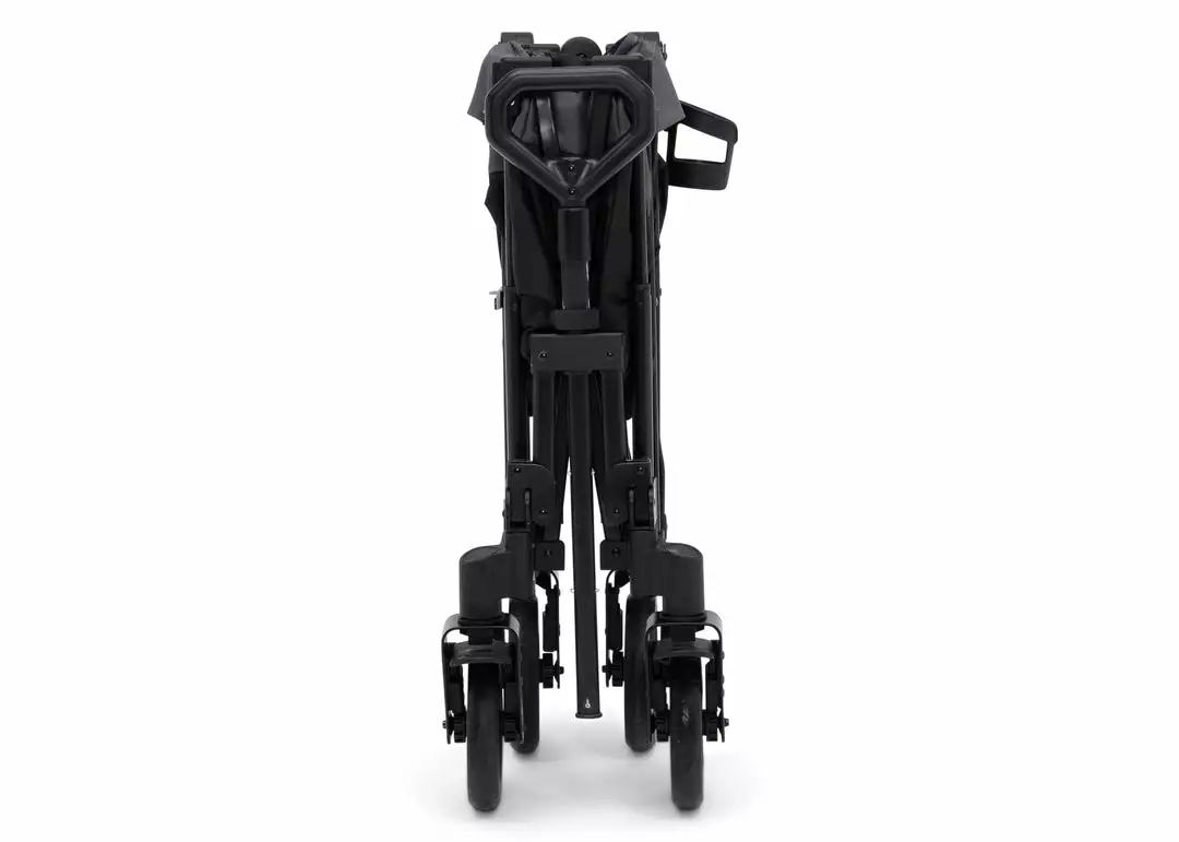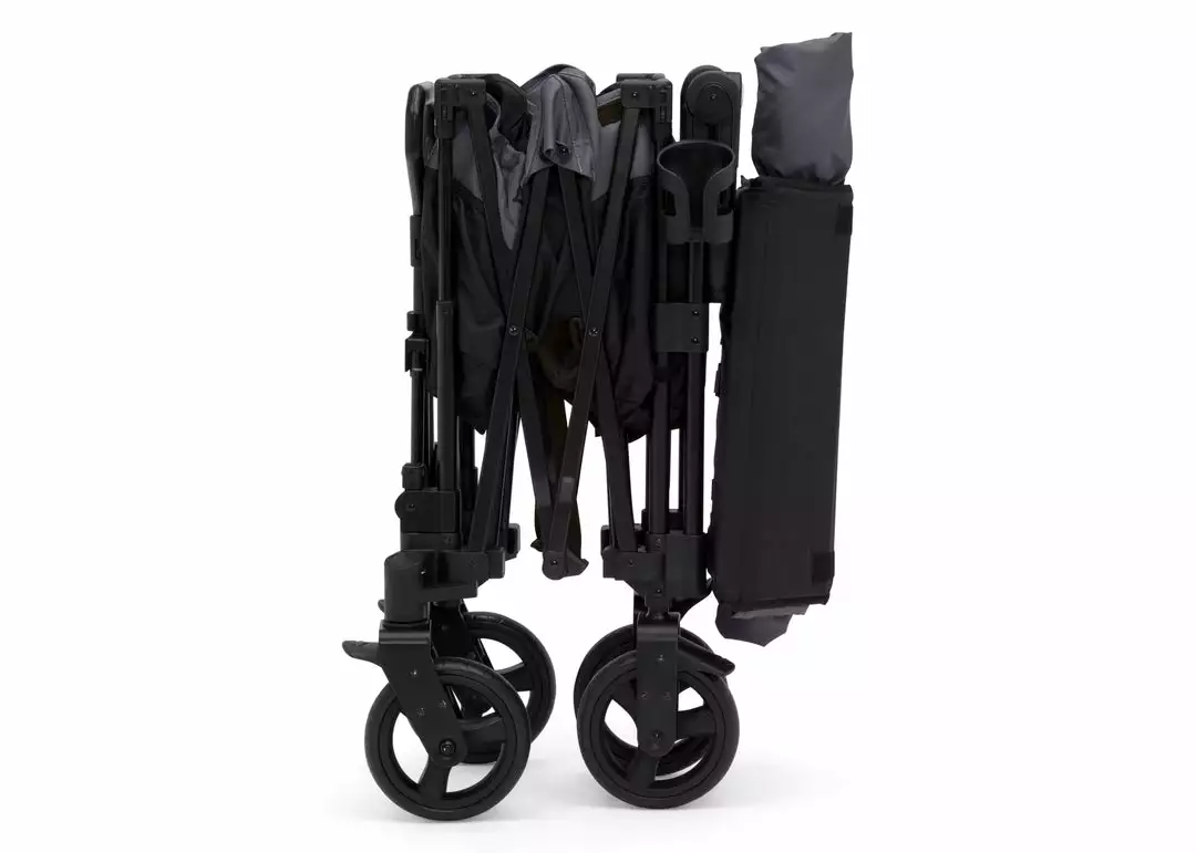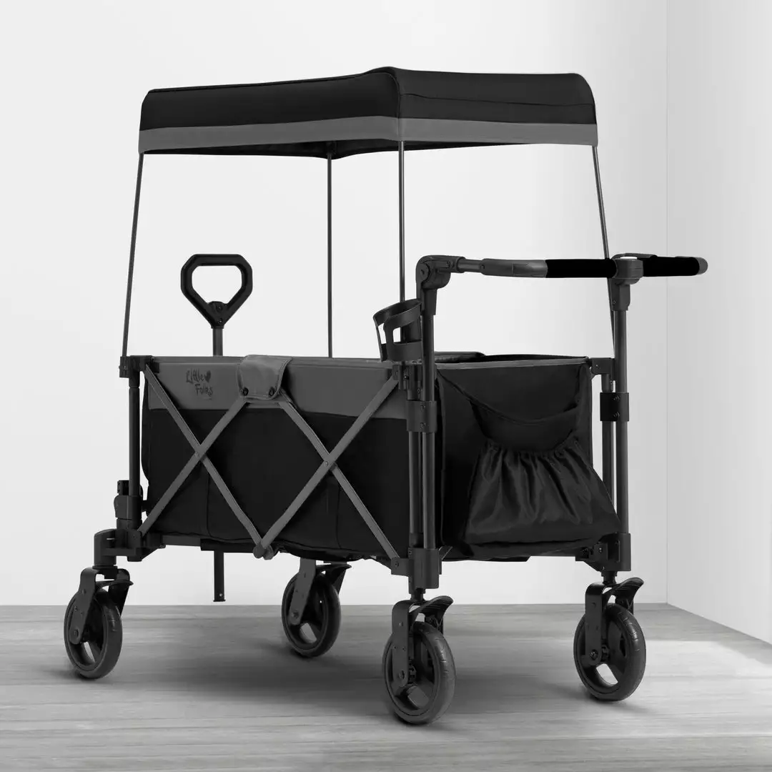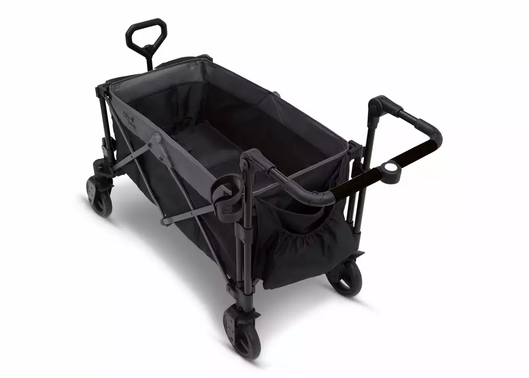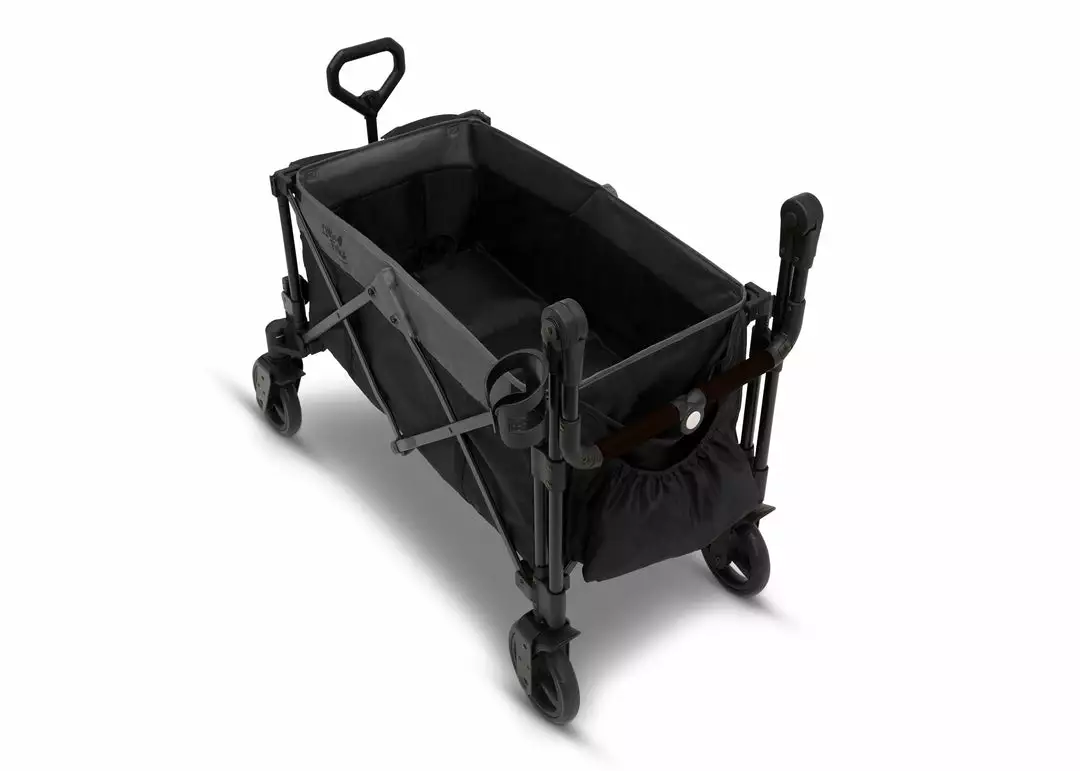 The Little Folks City Wagon Cruiser by Delta Children is specifically designed to grow and flow with your family. Packed with more features than a standard double stroller, this convenient wagon is perfect for indoor or outdoor activities. A comfy option for siblings or friends, this stroller wagon features two cushioned seats with 3-point safety harnesses for security while the removable center console with two cup holders and storage pocket allows kids to share snacks, toys and drinks. An additional cup holder for parents and side pockets ensure you can bring everything you need along for the adventure. The removable, UV blocking canopy and roll-down shades offer privacy and protection from the sun or rain. Easy to drive, it features swivel front wheels that allow you to effortlessly turn and pivot, as well as push and pull handles with adjustable heights. The wagon’s compact fold makes it easy to store or transport. And when your children outgrow the need for a wagon, use it to haul your own gear at the farmers market, while gardening or the grocery store. Holds up to 110 lbs. (55 lbs. per seat). Weighs 36.3 lbs. Recommended for ages 9 months up to 55 lbs.