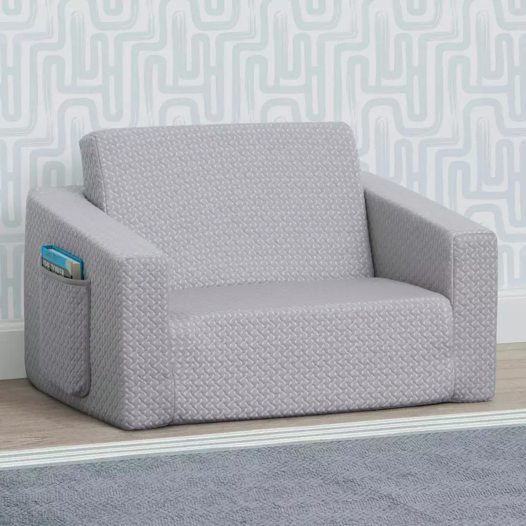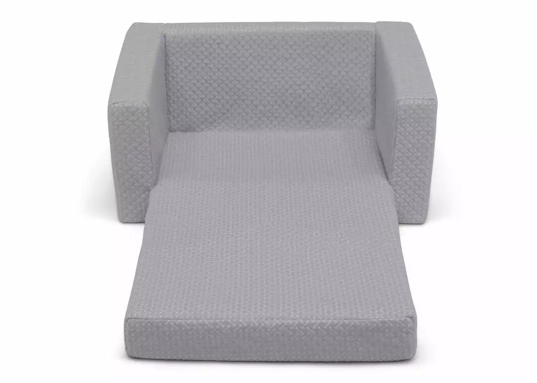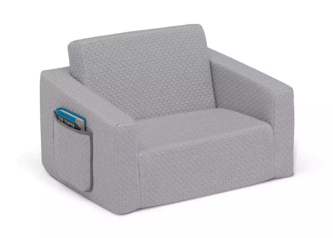 Serta’s iComfort Memory Foam Flip-Out 2-in-1 Convertible Chair to Lounger for Kids is a cozy chair by day, laid-back lounger by night. This convertible seat easily flips open to reveal multiple ways for your child to relax–they’ll love to sit and read or watch their favorite movies on the chair but when it’s time for a nap, this seat folds out into a comfy sleeper bed. Big enough to fit two small kids comfortably in chair mode, it’s light enough to move around the house and is ideal for your children to share during playtime or sleepovers. The quilted iComfort slipcover with easy-to-reach side pocket creates the ultimate retreat for your little one. The supportive memory foam construction will keep its shape and provides all-day comfort. Designed to ship in a super-small box, this lightweight foam kids’ chair and lounger may take up to 24 hours to fully expand once unboxed. Machine-washable slipcover zips off for easy cleaning. Recommended for ages 18 months+.