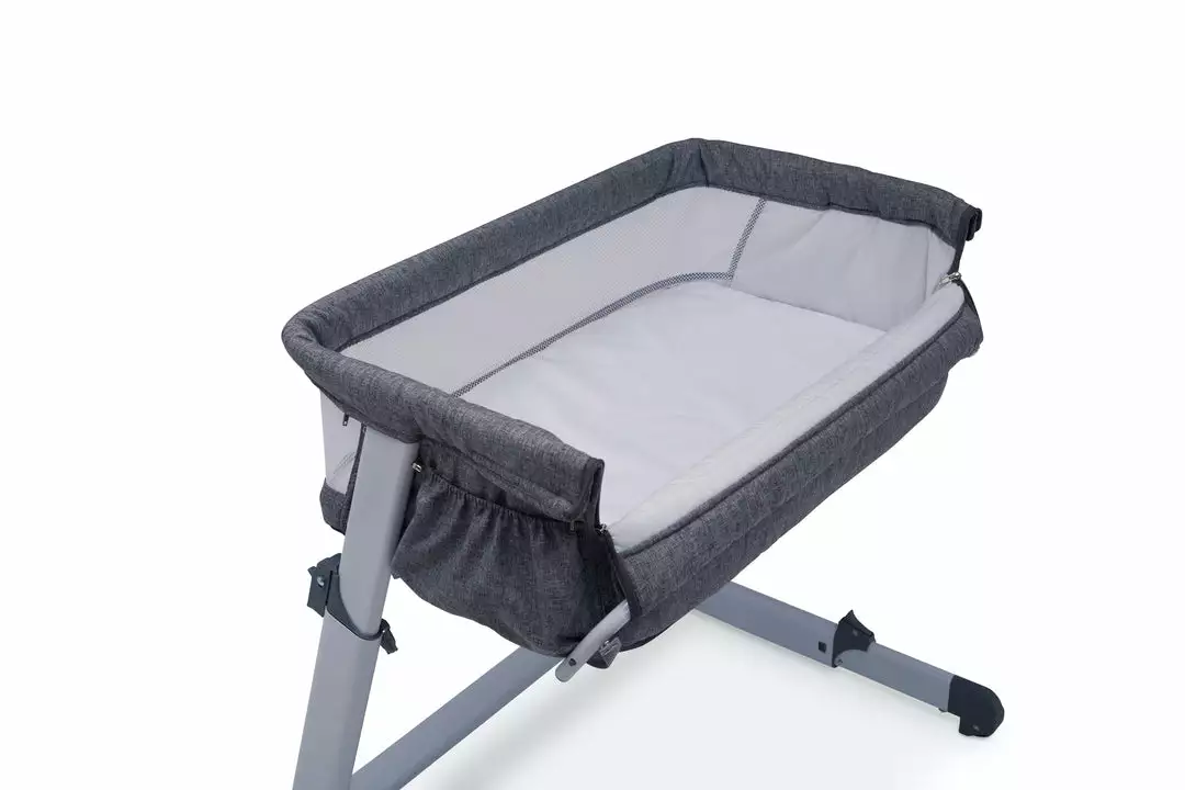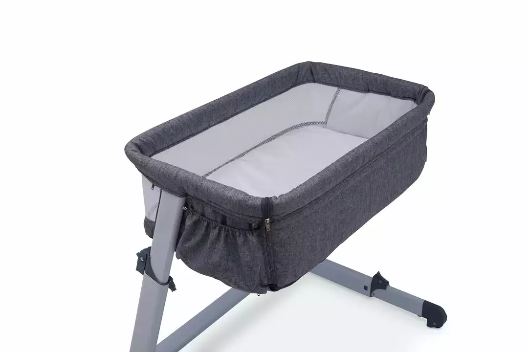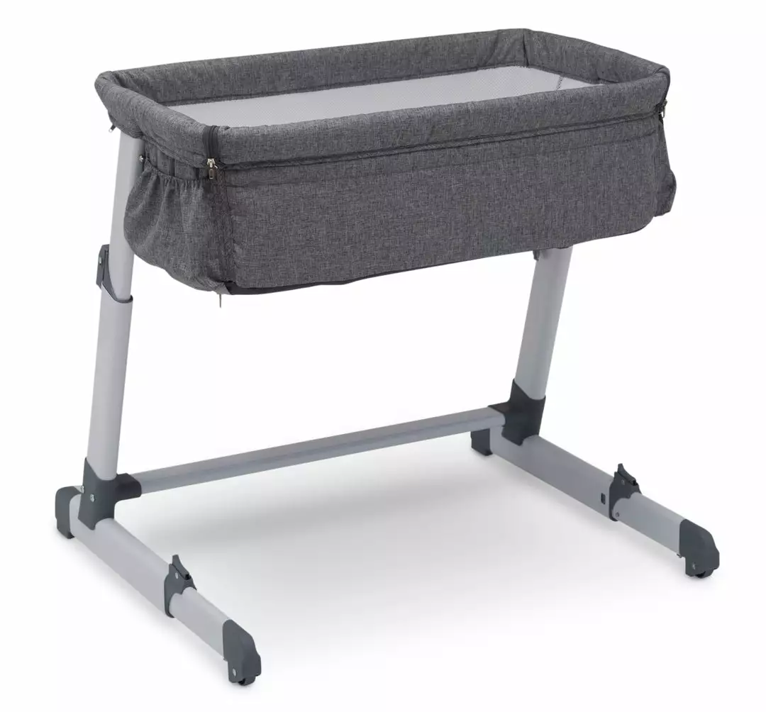 Keep your baby comfy and close by with the Dream Bedside Baby Bassinet by Simmons Kids. Its convertible design allows it to be used as a standalone bassinet or as bedside sleeper. When converted into a bedside sleeper, this bassinet provides the closeness and convenience of co-sleeping, while giving your baby their own protected space, plus it makes it easy to soothe and care for your baby, while still in bed. Simply unzip and unroll the side wall of the bassinet and use the included safety straps to securely attach the bassinet to your bed. The bassinetâs adjustable height ensures the perfect fit. Breathable mesh walls all around promote airflow and provide a clear view of your baby, so no matter how you use this bassinet, youâll be able to safely keep an eye on your little one. This bassinet is recommended for babies 0-5 months. Max weight 30 lbs. Stop use at 5 months or once your infant begins to push up on their hands and knees, whichever comes first. Bassinet includes bedside safety straps, mattress pad and fitted sheet.