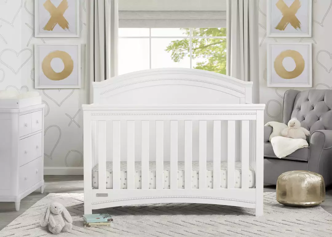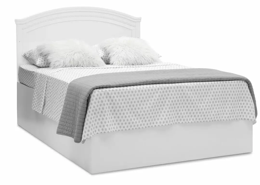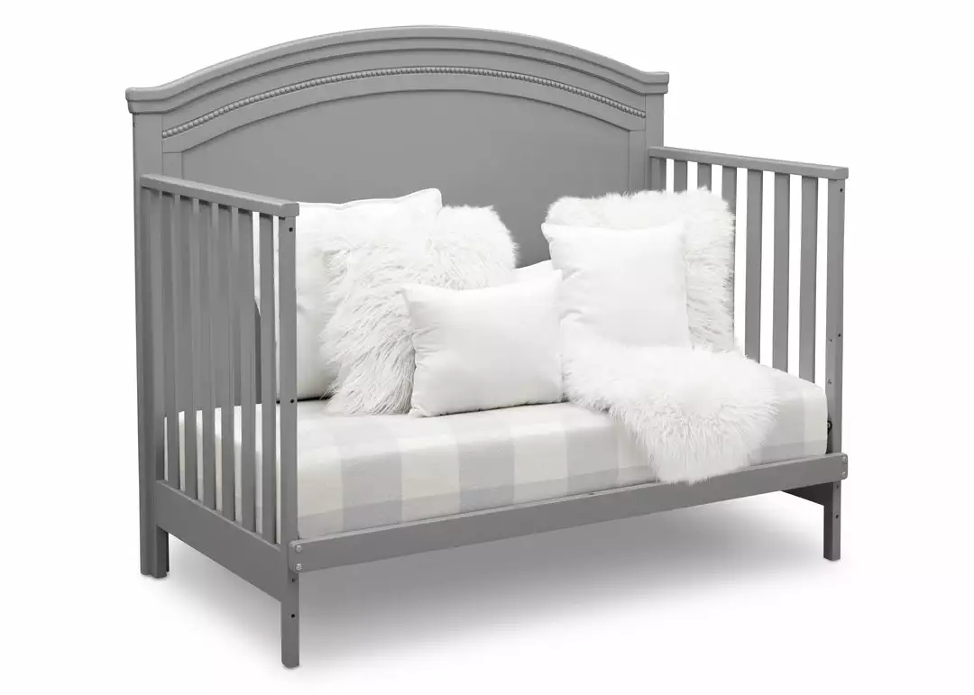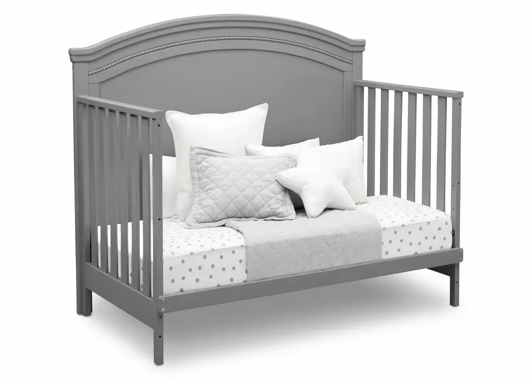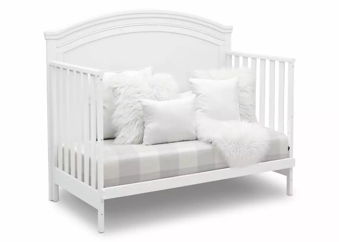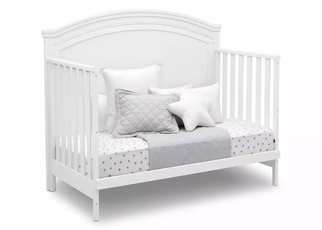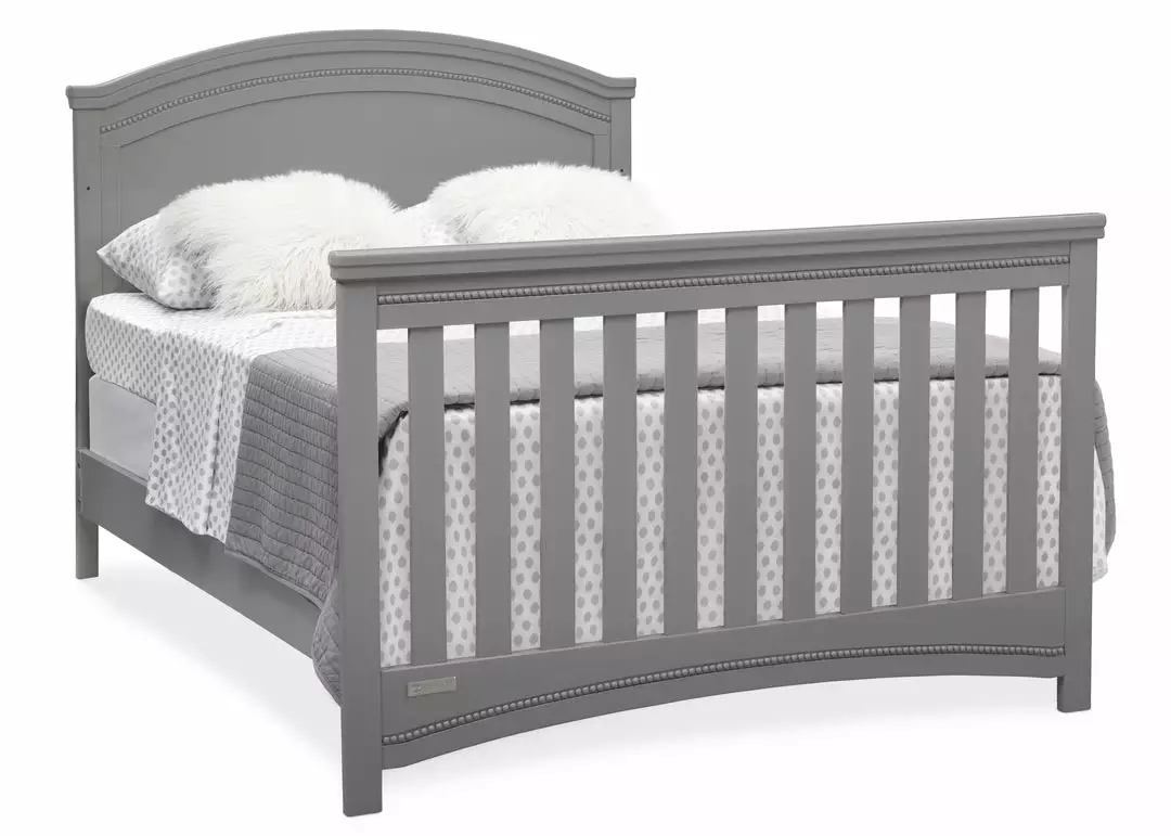 Nothing can compare to the enduring elegance of the Emma Crib âNâ More from Simmons SlumberTime. Classic architectural detailing, bead and crown molding, as well as a solid, bell-shaped headboard provide a sophisticated foundation that stands the test of time. An heirloom-quality piece, this crib easily grows alongside Baby with its three mattress heights that allow you to lower it as your child matures. Plus, once your little one has outgrown the need for a crib, it converts into a toddler bed, daybed, and then finally, a full size bed.