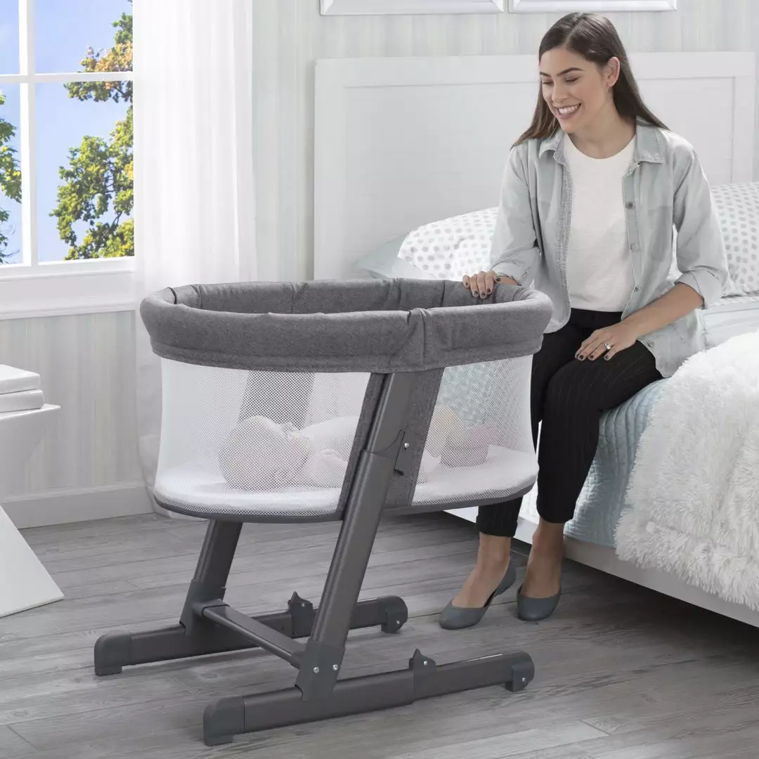 The Oval City Sleeper Bassinet is here for your baby as they grow. This newborn bassinet features five height positions that allow parents to raise and lower baby to keep them safely in your sightline.