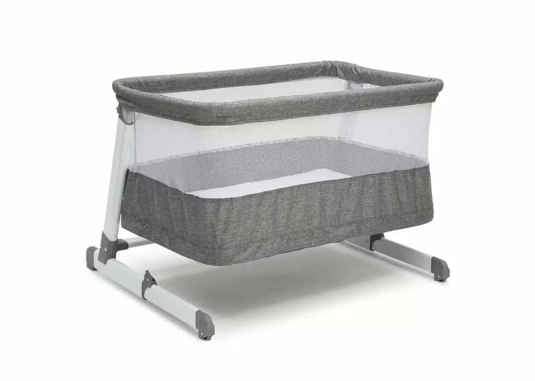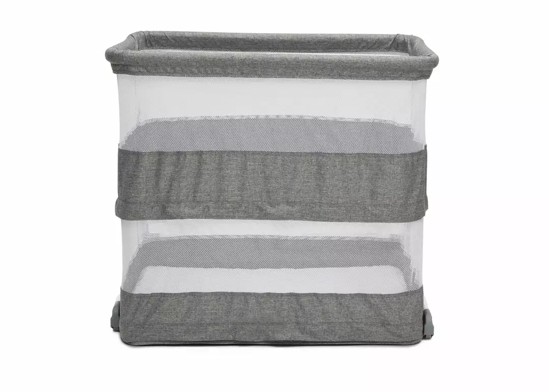 The Room2Grow Convertible Bassinet/Sleeper; For Babies up to 1 Year! from Simmons Kids® is there for your baby as they grow. Making it extremely easy and safe to room share with your little one from birth to 12 months, this newborn bassinet and infant sleeper combo features two stages that allow you to lower the unit as your baby matures. Use the bassinet mode for newborns (up to 15 lbs.) In the bassinet stage you can easily adjust the height so your baby is close by and within reach, which makes it easier than ever to soothe or feed your little one. For infants (up to 25 lbs.) use the sleeper mode. The sleeper mode allows you to lower the unit to the floor to ensure your growing baby has the safest sleep environment while still being near by. The included mattress pad offers a firm, comfortable surface to sleep on while mesh sides provide a clear view of Baby and help air circulate. A must-have for new parents, the Room2Grow Convertible Bassinet/Sleeper; For Babies up to 1 Year! helps make the first year with your baby stress-free by providing a safe room-sharing option for your family. The removable mattress cover is machine washable for easy cleanup.
